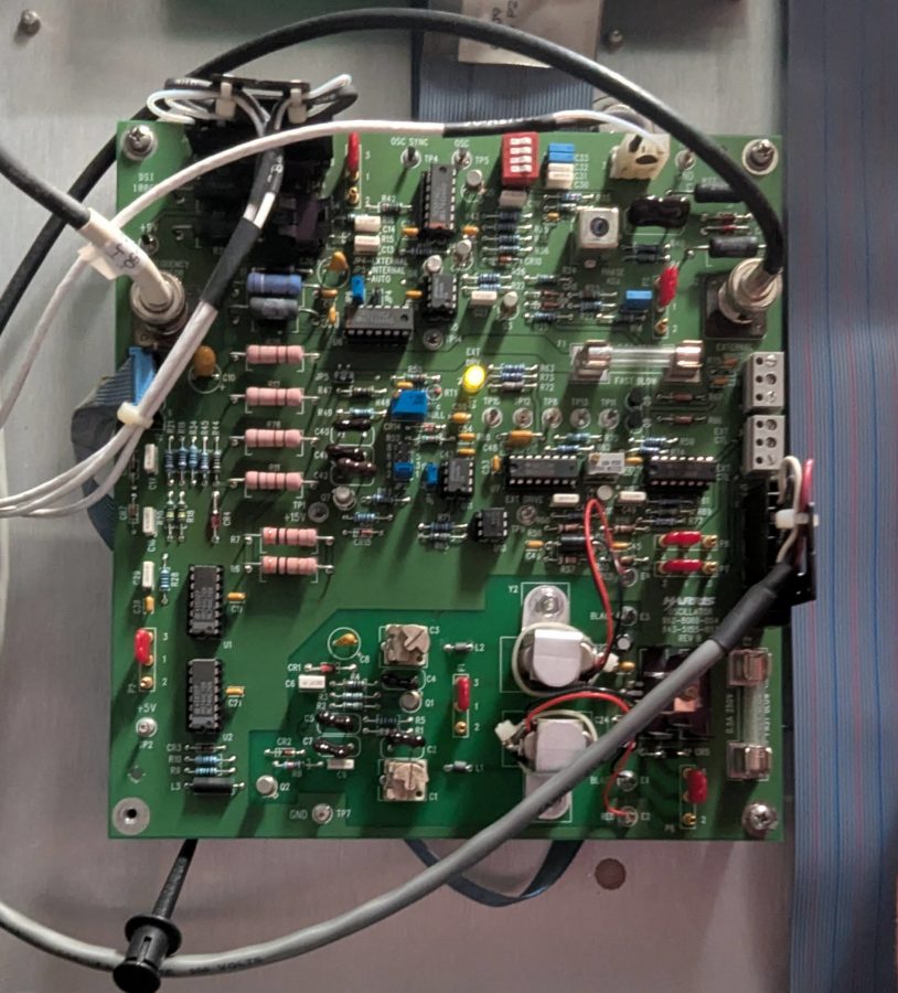 An external RF source can be plugged into J-1 on the Oscillator board. The source must be on the carrier frequency ± 20 Hz and have a peak-to-peak voltage of 5 volts. Frequency source selector P-6 must be set to external. Consult the manual, Oscillator Board Schematic.